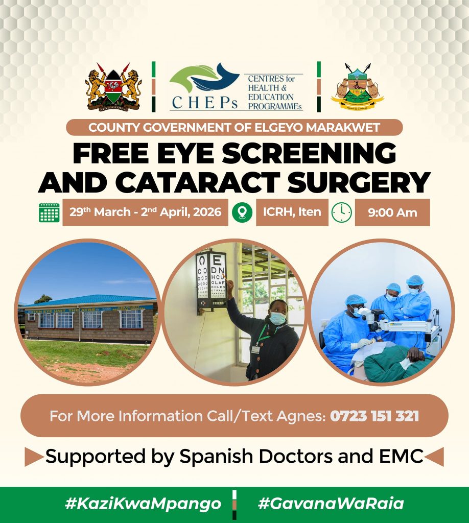 Current NewsNews Free Eye Medical Camp Ongoing at Iten County Referral Hospital. Over 400 patients have been assessed by doctors, with 100 eye cataract surgeries successfully done…Ivy KittonyMarch 30, 2026