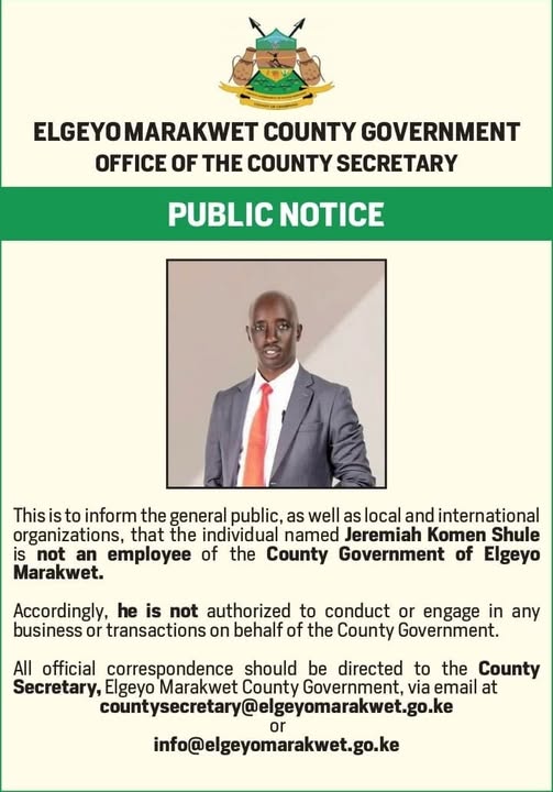 News The County Government of Elgeyo Marakwet wishes to inform the public that the individual in…Ivy KittonyNovember 12, 2025